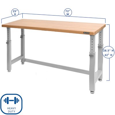 Ultrahd Height Adjustable Heavy Duty Workbench 72 X 25 Solid Wood Top Sam S Club